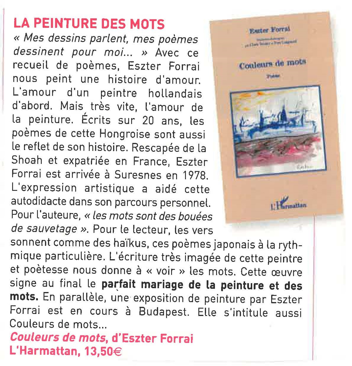 Article "La peinture des mots" N° 254 Suresnes Magazine
