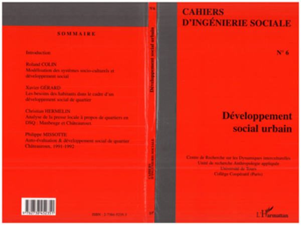 Articles au sommaire de ce numéro: Modélisation des systèmes socio-culturels et développement social; Les besoins des habitants dans le cadre d'un développement social de quartier; Analyse de la presse locale à propos de quartiers en DSQ,; Auto-évaluation & développement social de quartier.