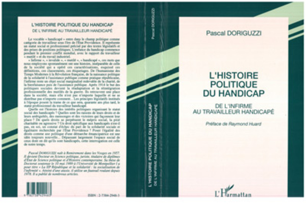 Objet-sujet d'enjeux sociaux et d'intérêts précis, la recherche en science sociale sur le handicap nécessite une approche pluridisciplinaire : histoire, science politique, sociologie, médecine, psychologie, droit ou économie. L'analyse des débats parlementaires et des lois sociales ne suffit donc pas pour rendre compte de la vie des hommes handicapés et du travail social sur le handicap. Ces lois sociales sont presque toujours le fruit d'événements politiques ou militaires. Cependant le droit encadre et organise l'existence des populations désignées comme ""handicapées"", la science politique rend compte de ces changements accompagnant ceux de la cité : se connaître, connaître sa place dans la société et les motifs de celle-ci représente un enjeu social pour les handicapés.